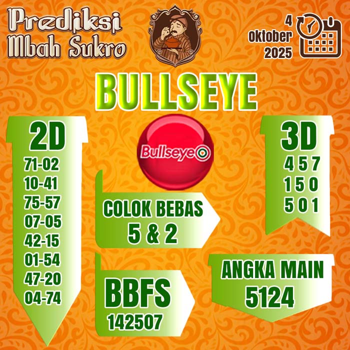 PREDIKSI MBAH SUKRO BULLSEYE SABTU 4 OKTOBER 2025