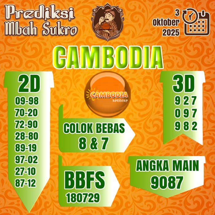 PREDIKSI MBAH SUKRO CAMBODIA JUMAT 3 OKTOBER 2025