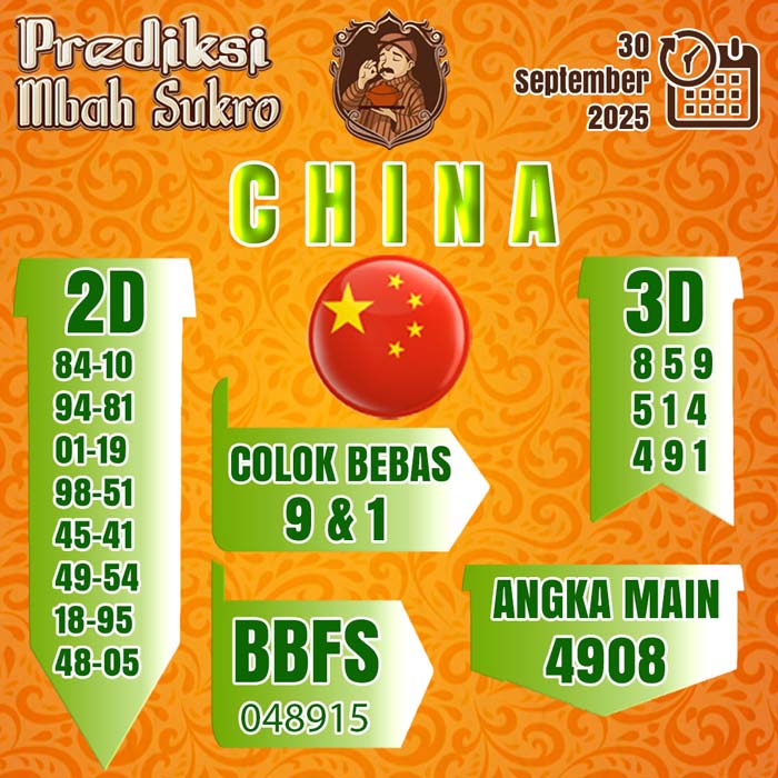 PREDIKSI MBAH SUKRO CHINA SELASA 30 SEPTEMBER 2025