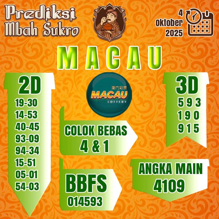 PREDIKSI MBAH SUKRO MACAU SABTU 4 OKTOBER 2025